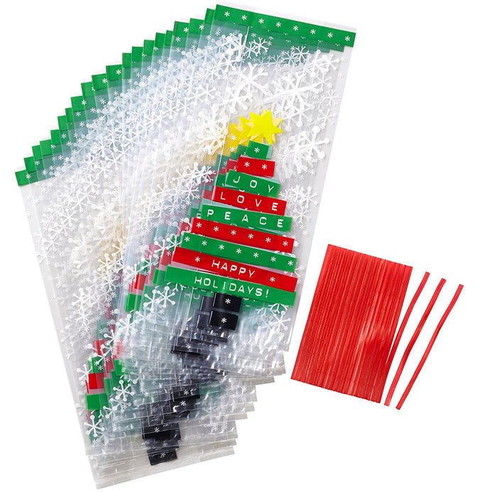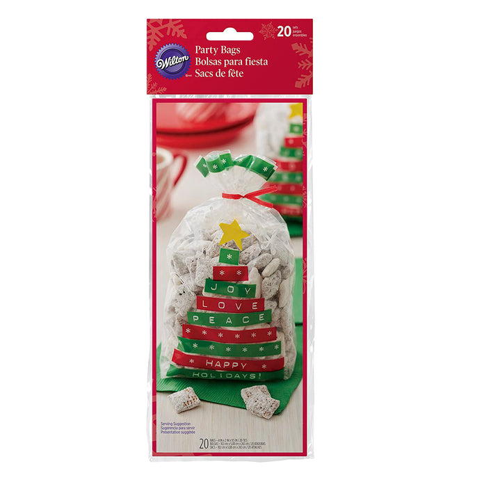 Bolsas de plástico para galletas, dulces, o pequeños regalos y sorpresas con un divertido diseño de árbol de Navidad.