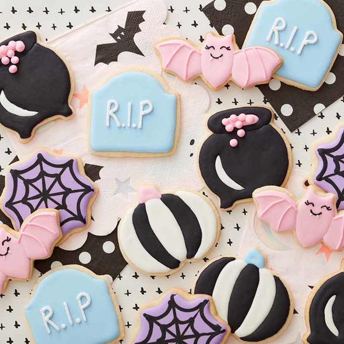 Olvídate de los dulces, estos adorables cortadores de galletas de Halloween son ideales para hacer espeluznantes galletas de azúcar, golosinas de cereal de arroz y más. Úselos para preparar deliciosos bocadillos para los que quieran pedir dulces, o colóquelos en una bandeja para una fiesta de disfraces de Halloween o una noche de cine. Con una variedad de divertidas formas de galletas, este juego es ideal para hornear en octubre. El juego incluye una araña, una lápida, una calabaza, un murciélago, una telaraña, un ataúd y un caldero.