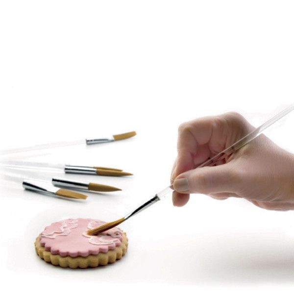 Utiliza estas brochas para decorar tus postres, ya sea utilizándolas en tu fondant, royal icing o cualquier otra de tus creaciones. Vienen en seis tamaños diferentes. Incluye pincel delineador para líneas finas, pincel para líneas gruesas, pincel pequeño para sombrear y difuminar, pincel plano para trazos y pincel para mezclar áreas grandes.