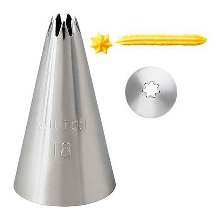 Decora tus postres con estrellas, conchas y ondas a tus pasteles y cupcakes con esta boquilla de estrella abierta. Usa esta duya en movimientos giratorios o crea rosetones para pasteles, cupcakes y galletas bellamente decoradas. Los bordes finamente cortados en esta punta crean decoraciones con excelente detalle. Una herramienta clásica para cualquier decorador, funciona con bolsas de decoración estándar y acopladores de tamaño estándar. Fabricado en acero inoxidable y grabado con su número para una fácil identificación; aguanta años de uso. Apto para lavavajillas en la rejilla superior.