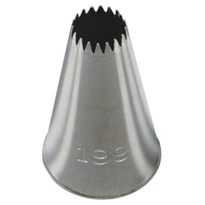 Decora tus postres con estrellas, conchas y ondas a tus pasteles y cupcakes con esta boquilla de estrella abierta. Usa esta duya en movimientos giratorios o crea rosetones para pasteles, cupcakes y galletas bellamente decoradas. Los bordes finamente cortados en esta punta crean decoraciones con excelente detalle. Una herramienta clásica para cualquier decorador, funciona con bolsas de decoración estándar y acopladores de tamaño estándar. Fabricado en acero inoxidable y grabado con su número para una fácil identificación; aguanta años de uso. Apto para lavavajillas en la rejilla superior.