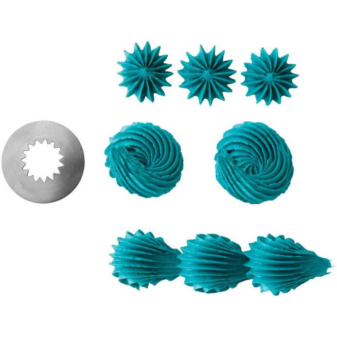 Decora tus postres con estrellas, conchas y ondas a tus pasteles y cupcakes con esta boquilla de estrella abierta. Usa esta duya o Duya en movimientos giratorios o crea rosetones para pasteles, cupcakes y galletas bellamente decoradas. Los bordes finamente cortados en esta punta crean decoraciones con excelente detalle. Una herramienta clásica para cualquier decorador, funciona con bolsas de decoración estándar y acopladores de tamaño estándar. Fabricado en acero inoxidable y grabado con su número para una fácil identificación; aguanta años de uso. Apto para lavavajillas en la rejilla superior.