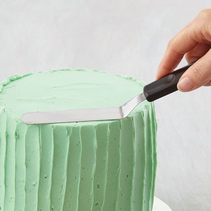 - La espátula en ángulo es ideal para glasear y suavizar el glaseado de pasteles sin meter los dedos en el glaseado.