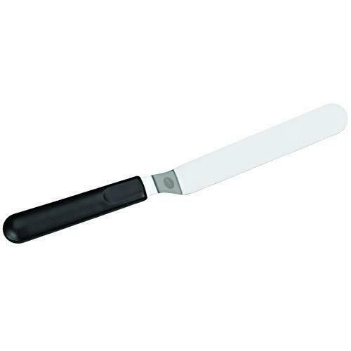 Mantenga sus dedos alejados del glaseado con esta espátula para glaseado acodada en ángulo. Ideal para suavizar el glaseado de pasteles, cupcakes y galletas; también ayuda a llenar las bolsas de decoración y agrega relleno entre las capas de la torta para que pueda decorar sus postres con facilidad. La hoja resistente de acero inoxidable de 9 pulgadas con un cómodo mango de plástico tiene el tamaño adecuado.