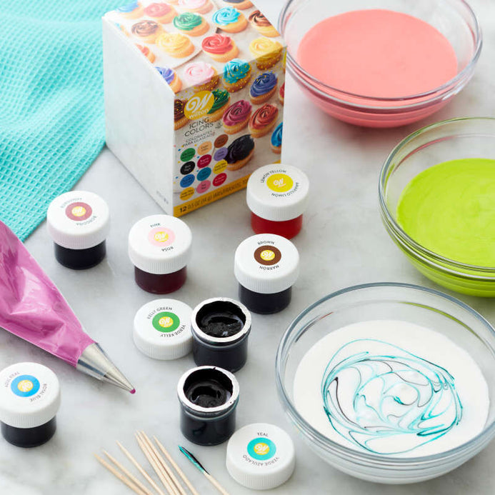 Puedes teñir tu glaseado en casi cualquier tono con este juego de 12 colores. También los puedes utilizar para colorear o teñir tus masas de pastel o galleta. La fórmula concentrada a base de gel le da a la crema de mantequilla, glaseado real o masa de pastel un hermoso tono sin diluirlo, ¡así que ponle el color!