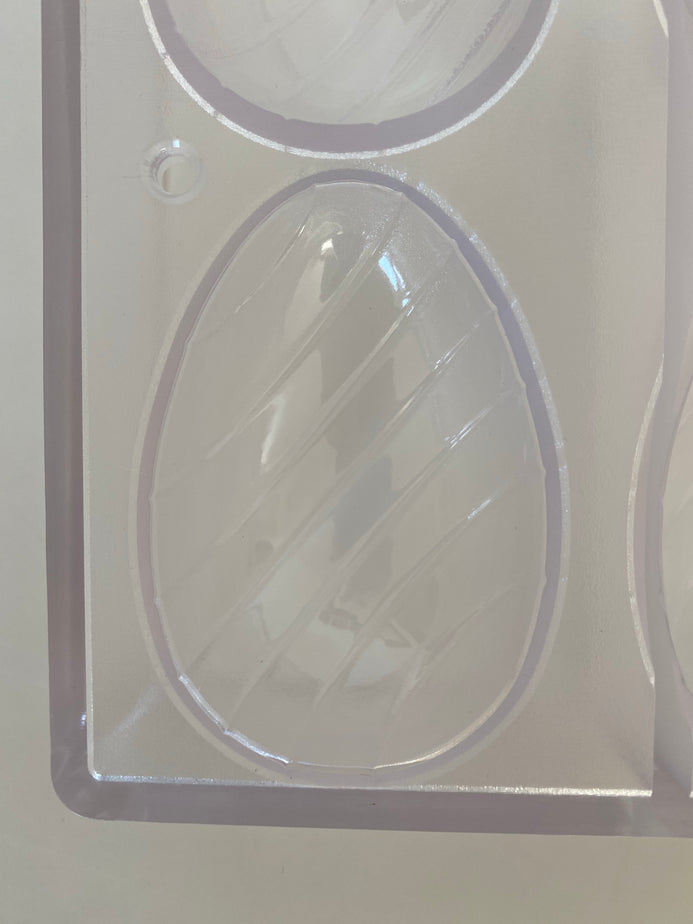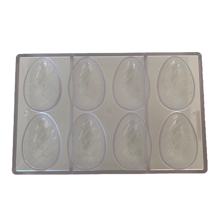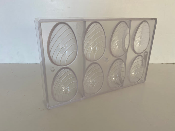 - Molde de policarbonato con ocho cavidades en forma de huevo con rayas
