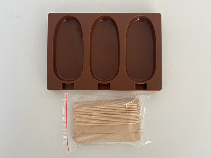 - Contiene un molde con 3 cavidades y 24 palillos de madera