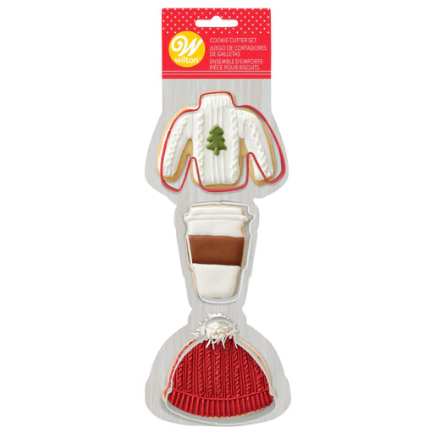 Este invierno, hornea divertidas galletas con estos cortadores en forma de figuras típicas de invierno como el suéter, el gorro y la taza que son también típicas en esta temporada de Navidad.