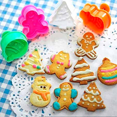 Cortadores pequeños de plástico con contorno de figuras de Navidad.