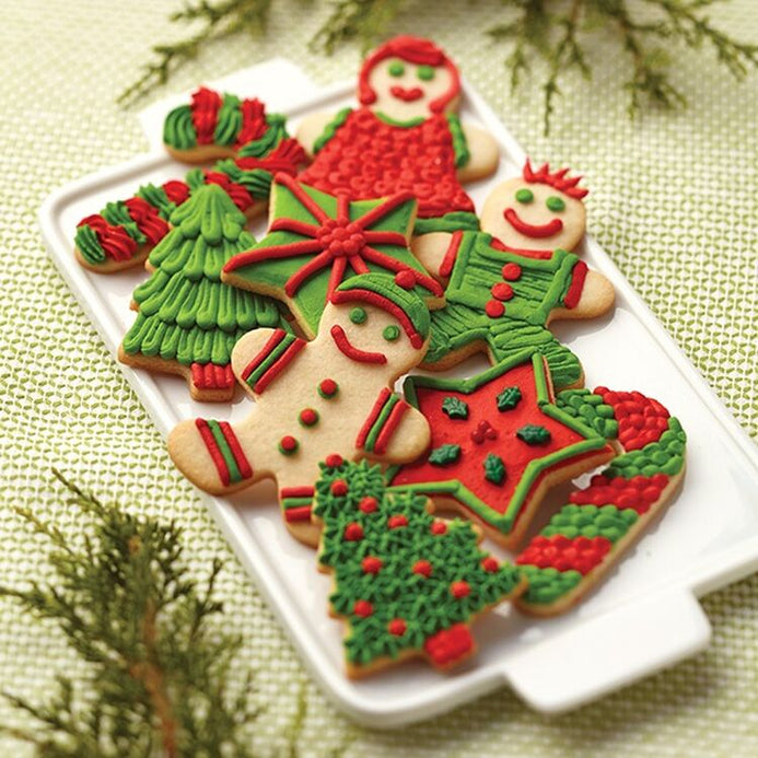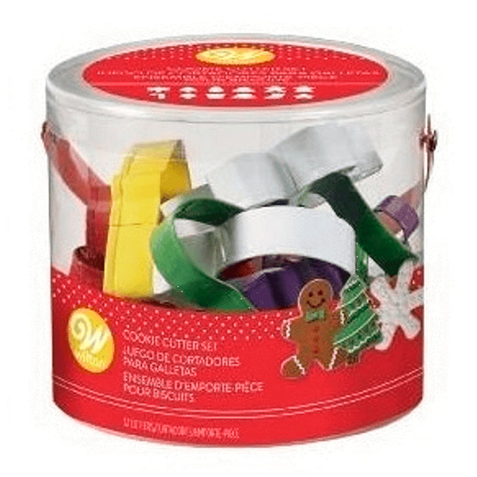 Regale sonrisas en las fiestas navideñas cuando haga galletas con este juego de cortadores. Elija entre copo de nieve, árbol, muñeco de nieve, gorro de Papá Noel, hombre de jengibre, mujer de jengibre, bastón de caramelo, adorno, regalo, campana, media y formas de estrella. La receta de galletas desplegables está incluida en el paquete.