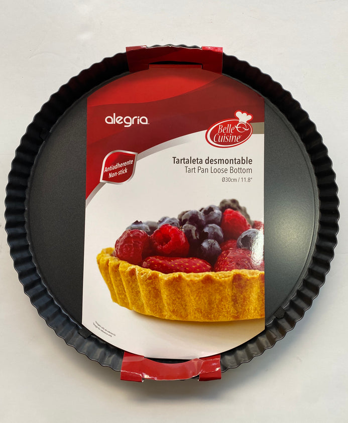 Molde para tarta, pie o quiche, cuenta con 30cm de diámetro y su base es removible.