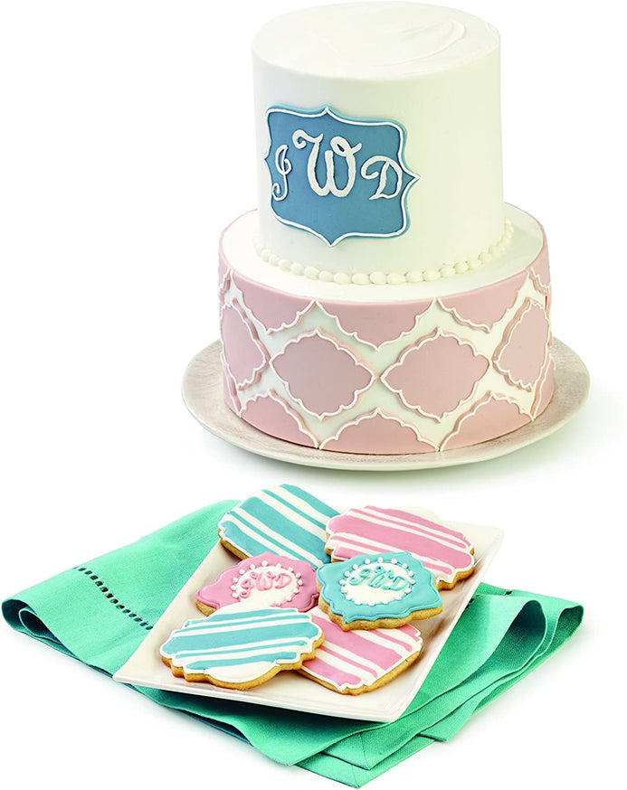 Cree fácilmente formas elegantes para letreros, monogramas y diseños en pasteles, galletas y piezas de fondant. Estos resistentes cortadores de placa de acero inoxidable tienen lados profundos para crear bordes nítidos. Ideal para monogramas y estarcido en nombres. Incluye seis piezas.