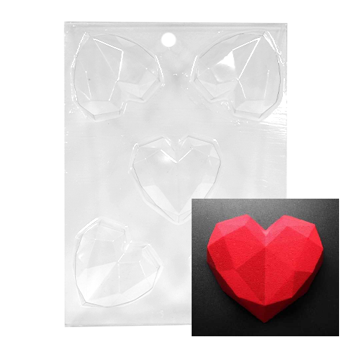 Molde de acetato ideal para chocolate, con forma de corazón geométrico.